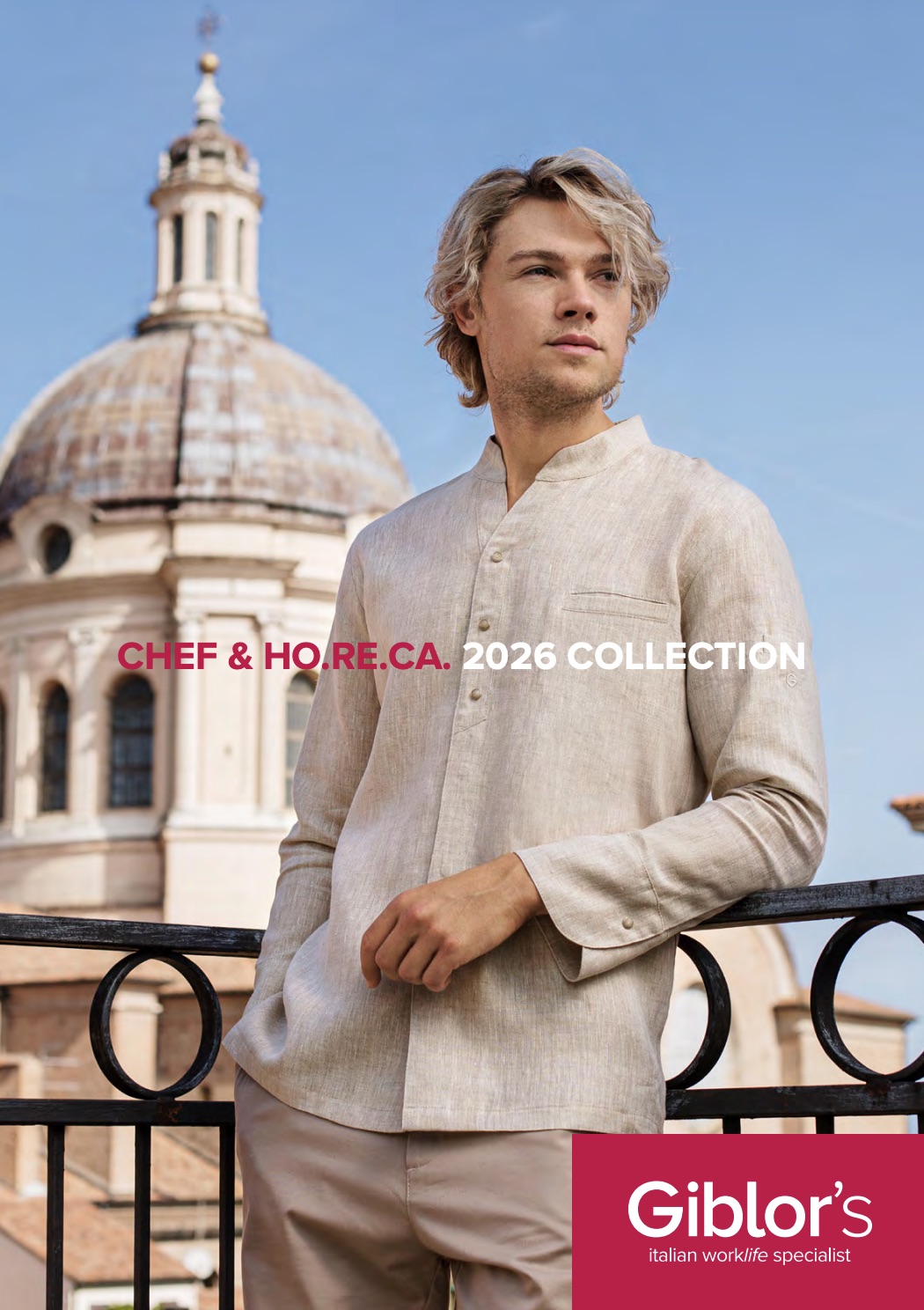 Il catalogo Giblor’s Chef & Ho.Re.Ca. 2026 offre abbigliamento professionale per ristorazione e ospitalità. Unisce